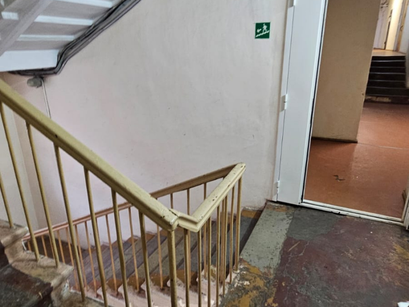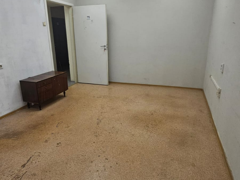 Выполнена качественная отделка: обои под покраску, потолок подвесной типа "Армстронг", на полу - линолеум.