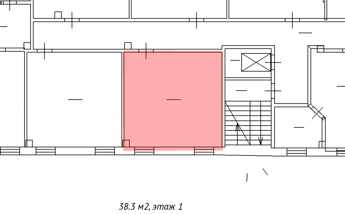 Площадь помещения составляет 38.3 кв. м.