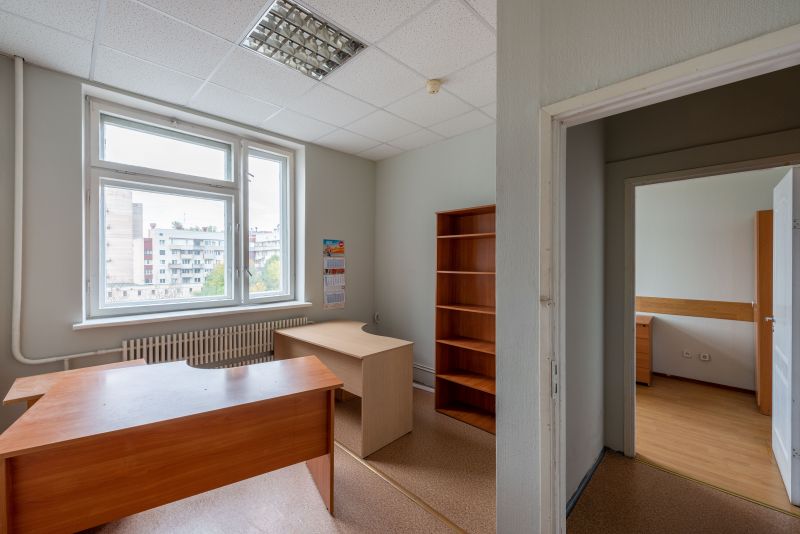 Выполнена высококачественная отделка помещений: стены - окрашенные обои, потолок подвесной типа "Армстронг", напольное покрытие - линолеум.