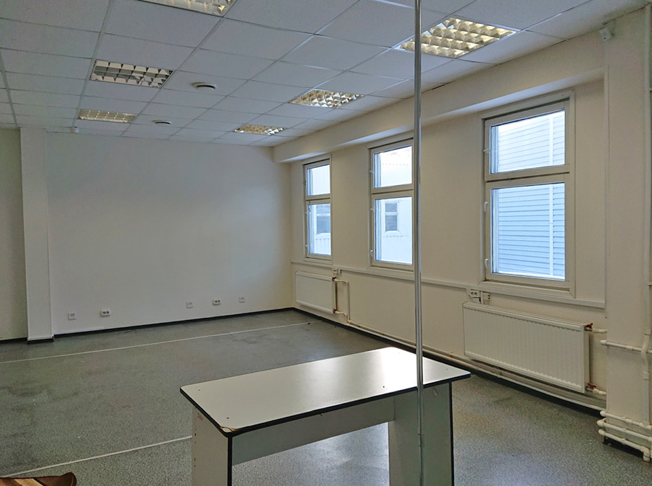 Выполнена качественная отделка: стены - окрашенные обои, потолок подвесной типа "Армстронг", полы - линолеум.