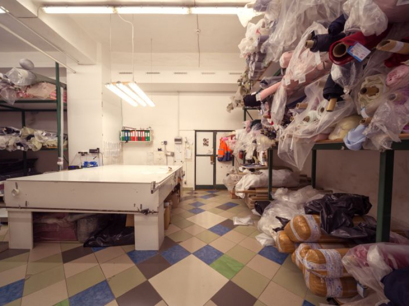 Внутри ровный бетонный пол, окрашенные стены, много окон и потолки высотой 4,17 м.