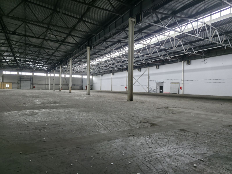 Высота потолка 9,8-11 м, антипылевые полы, имеется пандус + роллетные ворота (ворота на пандусе - 4 шт., ворота в ноль - 4 шт.).