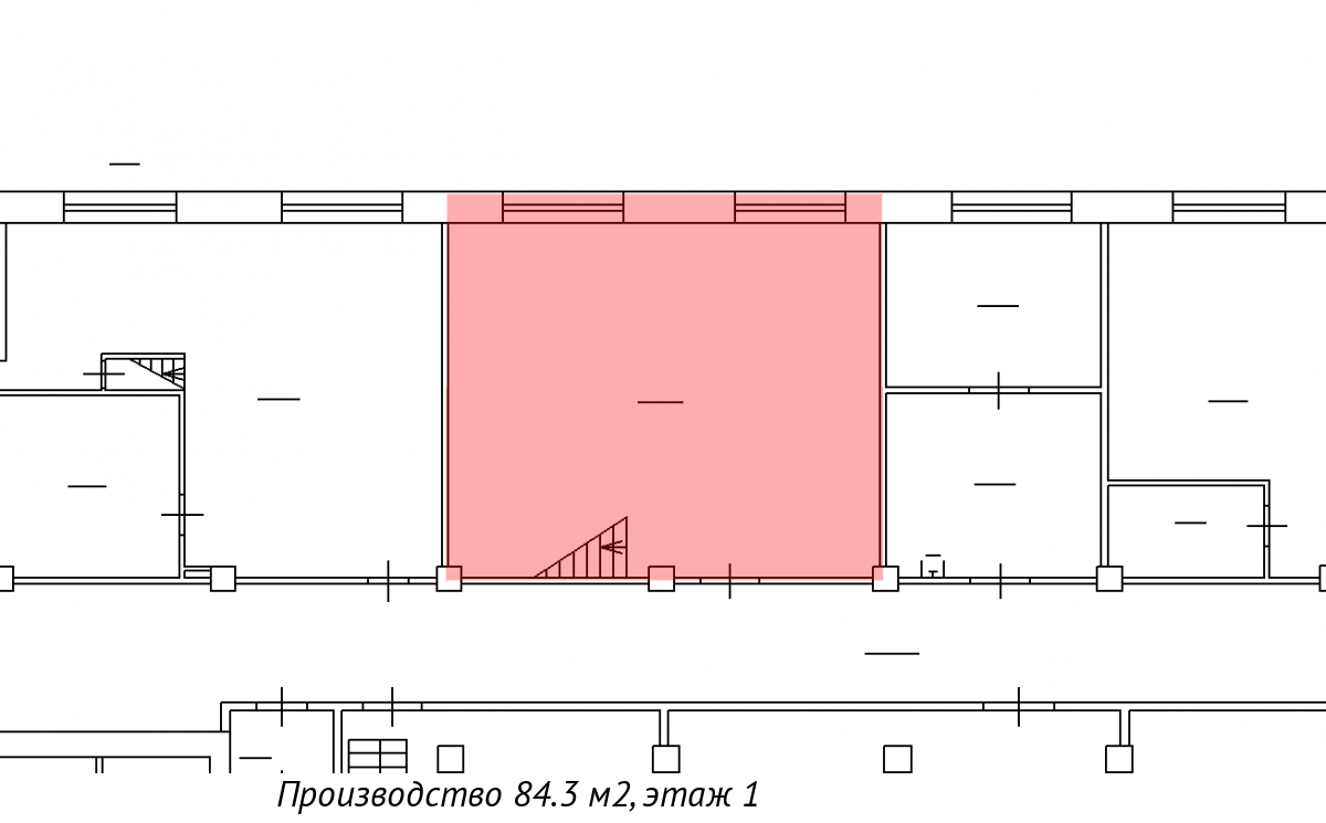 Помещение находится на 1-ом этаже здания (один лестничный пролет вверх).