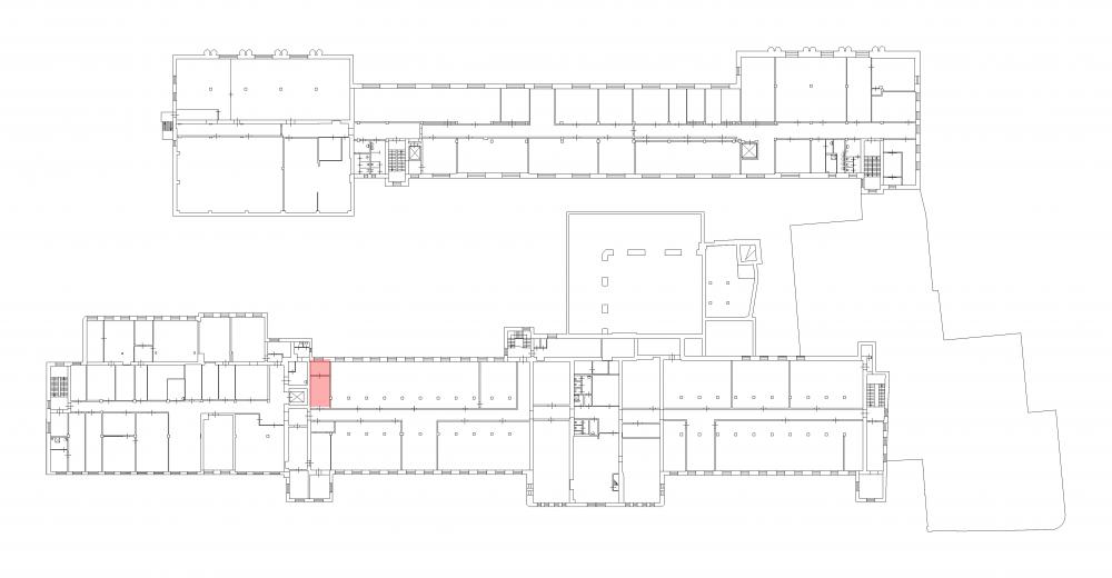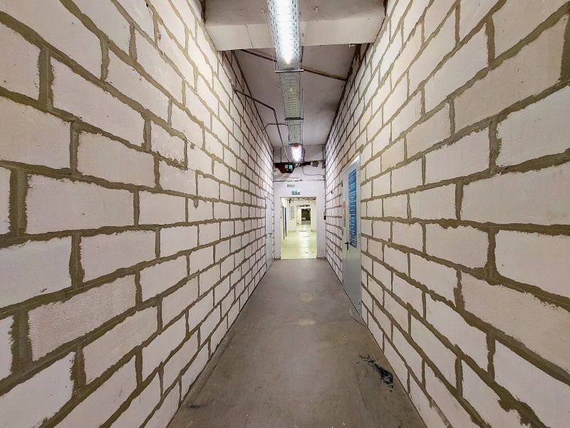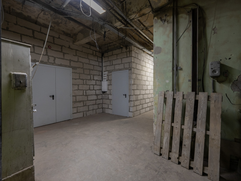 Высота потолка 3,48 м. позволит установить многоярусные стеллажи для экономии площади помещения.