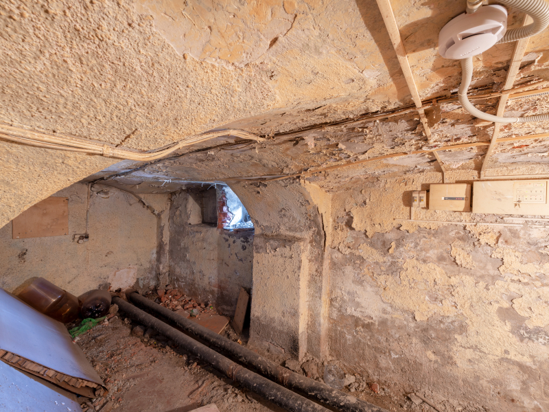 - Внутри бетонные стены, потолки высотой 2,10 м, есть вход с улицы.