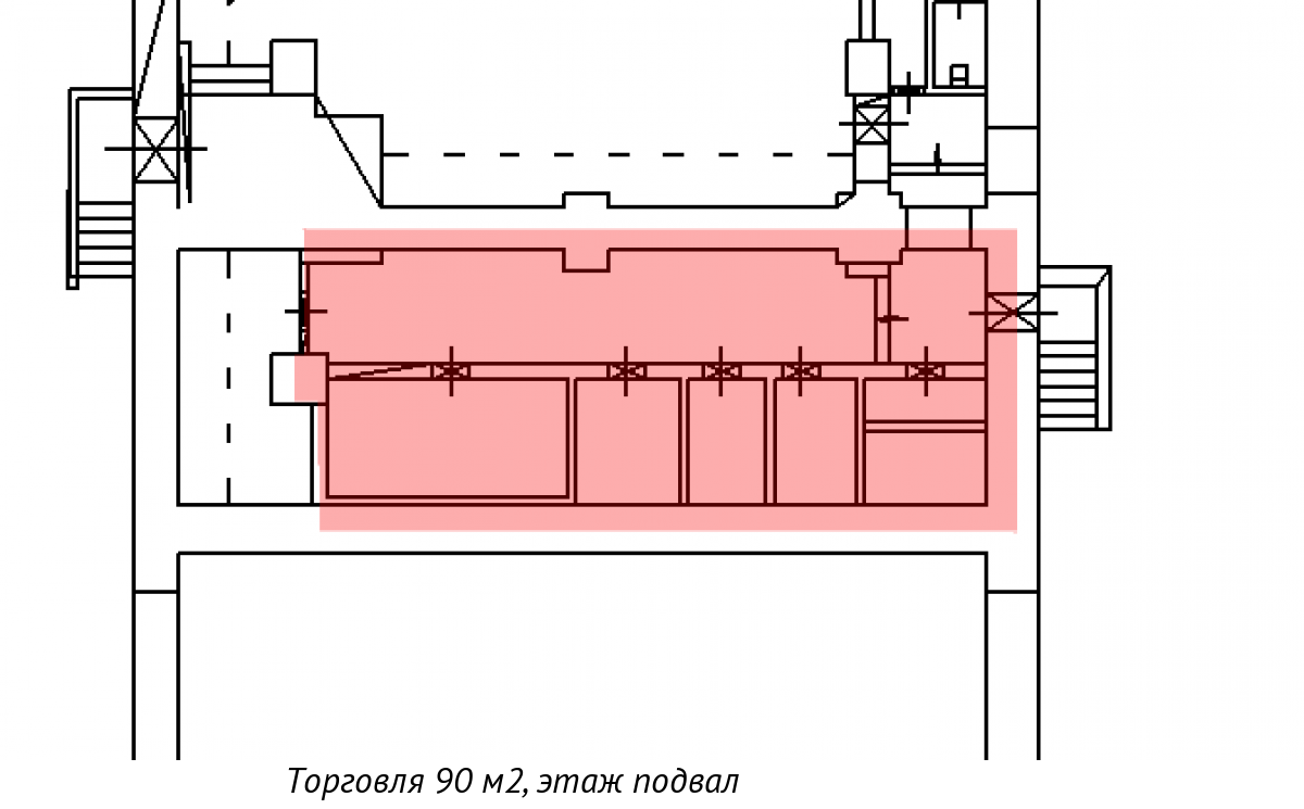 Подвальное помещение площадью 90 кв. м в центре Пушкина.