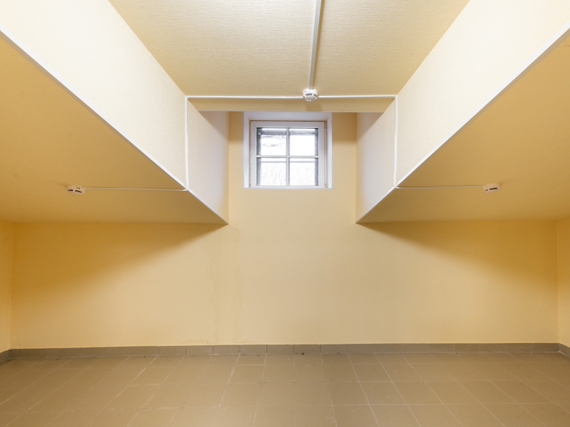 Внутри выполнена чистовая отделка в светлых тонах: окрашенные стены и кафельный пол.