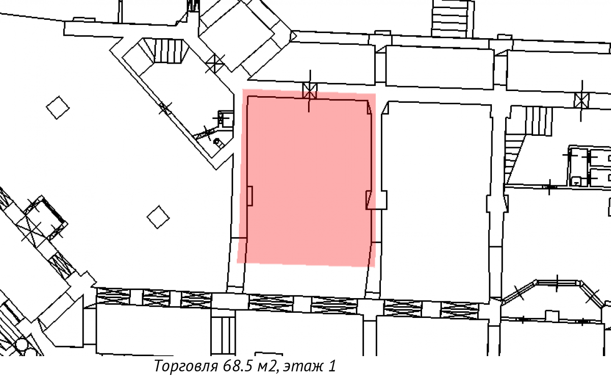 Собственник предлагает в аренду небольшое торговое помещение площадью 68,6 кв. м.