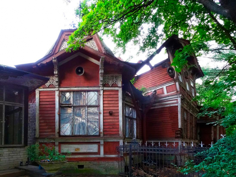 Деревянный петербургский дом конца XIX века с собственным небольшим садом, в котором можно сделать террасу.