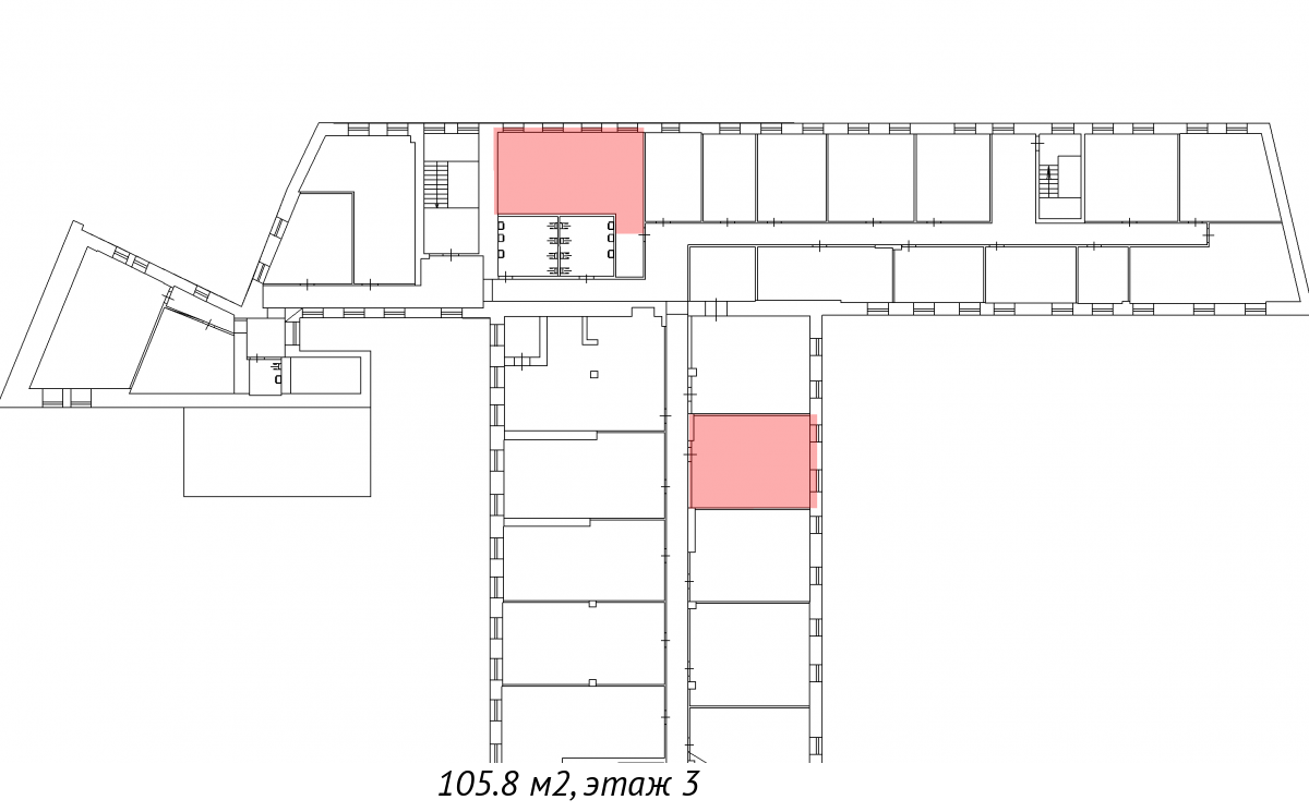 Предлагается в аренду просторное помещение площадью 105,8 кв. м на 3‑м этаже.