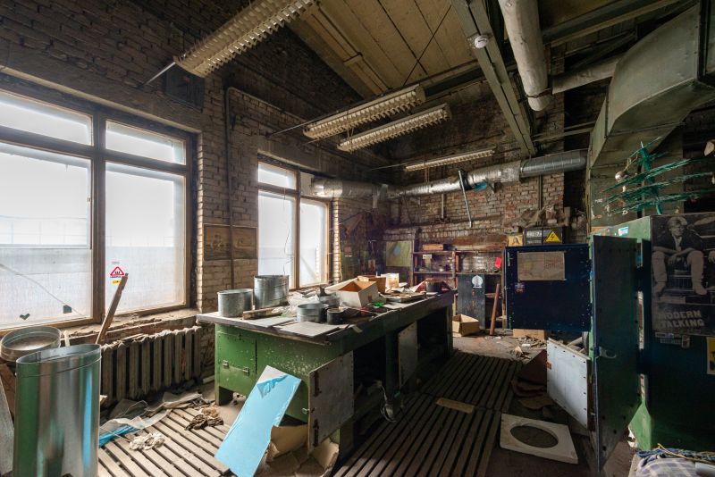 Высота потолка 4.98-5.77 м, ровный, бетонный пол.