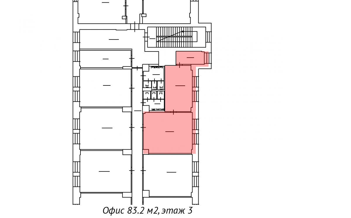 Площадь: 83,2 кв. м — достаточно для размещения нескольких рабочих мест.