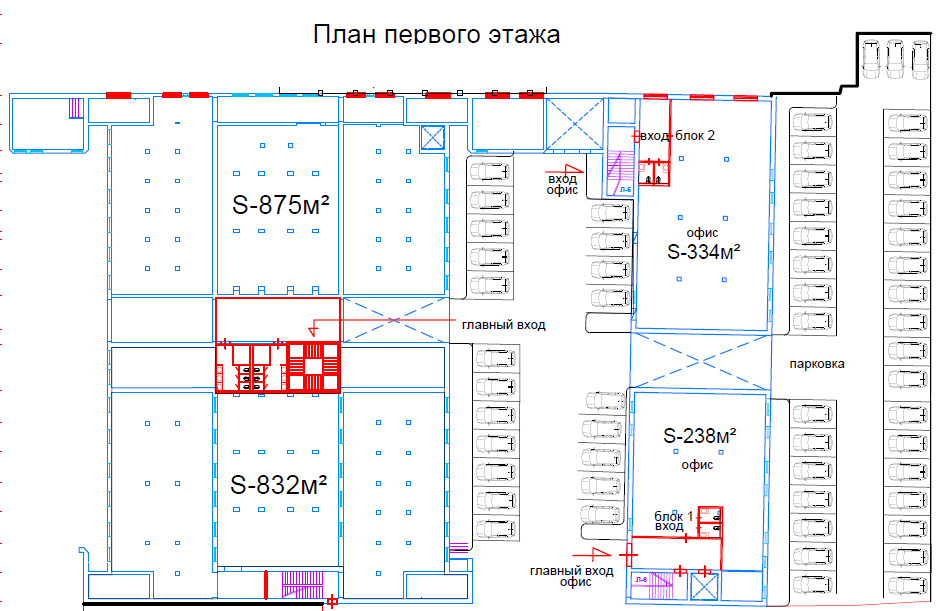 На 1 этаже расположатся торговые и офисные помещения, на 2-4 этажах офисы, в цоколе вспомогательные помещения.