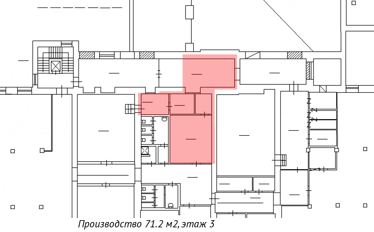 Есть грузовой лифт г/п 2т (2,4х1,9х2,2м) на этаже.