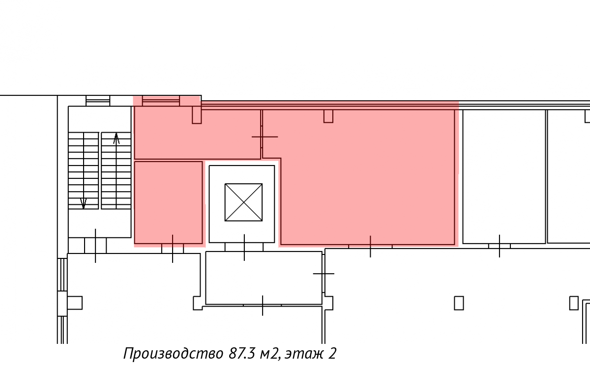 Помещение площадью 87.3 кв. м расположено на 2 этаже здания по адресу: улица Комсомола, дом 1-3.