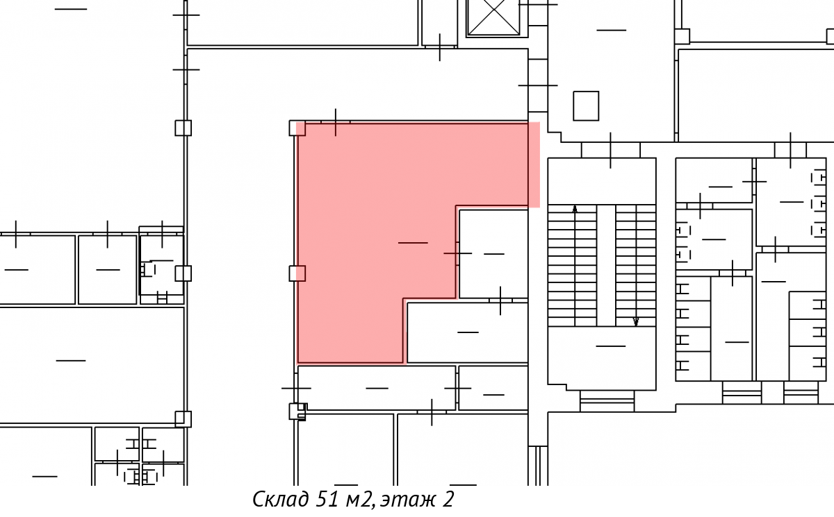Высота потолка — 4,80 м, есть грузовой лифт для удобства загрузки и выгрузки.
