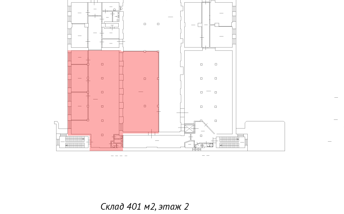 Блок площадью 401 кв. м находится на 2-м этаже здания на территории производственно-складского комплекса "Боровая".