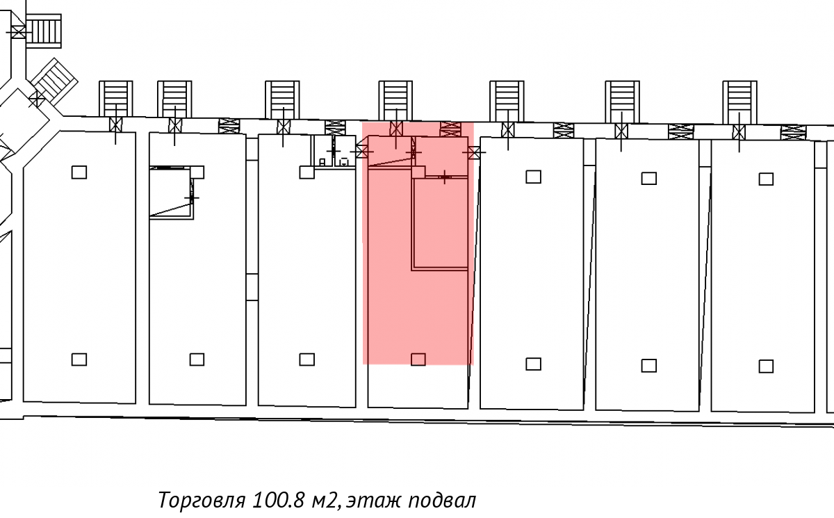 Подвальное помещение площадью 100,8 кв. м отлично подойдёт под магазин тактического снаряжения.