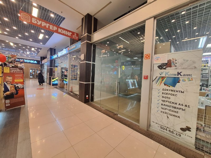 Помещение находится рядом со входом в торговый центр.