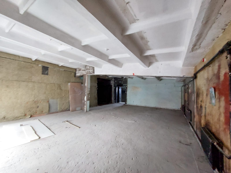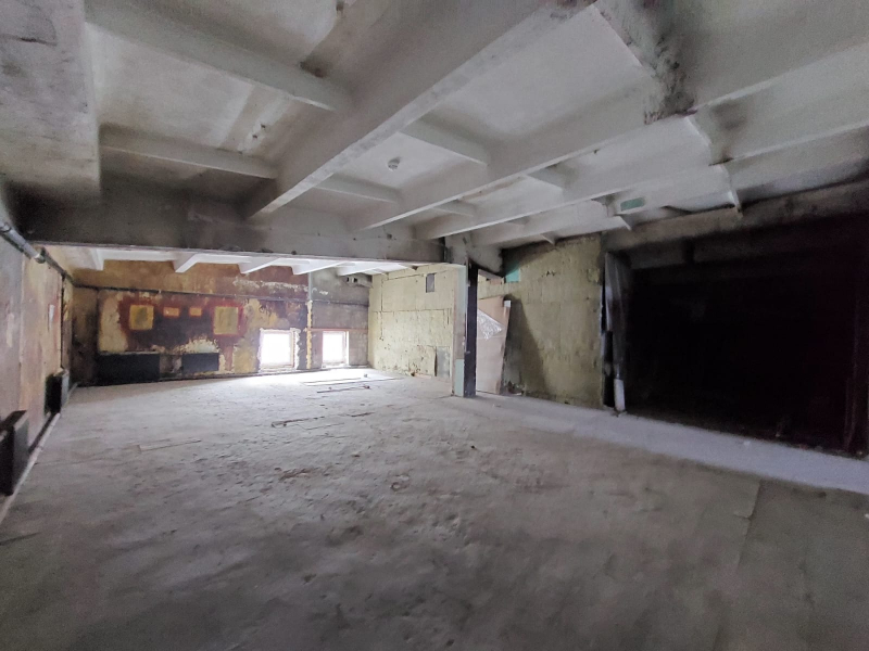 Высота потолка - 3,6 м, стены окрашены, бетонный пол.